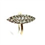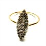 Půvabný zlatý prsten s brilianty. Šperk byl vyroben ze zlata růžového odstínu ryzosti 560/1000. Hlava prstenu je celá osázená brilianty starého brusu. Jedná se o 25 přírodních briliantů pyšnících se vysokou brilancí. Celková váha šperku 2,16 g. Velikost 55. Perfektní stav.