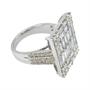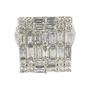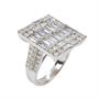Nepřehlédnutelný plesový prsten z bílého zlata ryzosti 750/1000 zdobený diamanty briliantového a bagetového brusu o celkové hmotnosti 3,40 ct. Velikost 54. Celková hmotnost 10,70 g. Rozměr hlavy prstenu 1,5 x 2 cm.