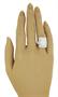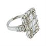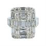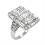 Výrazný prsten z bílého zlata ryzosti 750/1000 zdobený diamanty briliantového a bagetového brusu o celkové hmotnosti 3,40 ct. Velikost 54. Celková hmotnost 8,12 g. Rozměr hlavy prstenu 1,5 x 2 cm.
