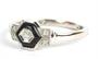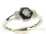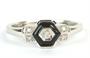 Prsten z bílého zlata ryzosti 585/1000 zdobený brilianty, o celkové hmotnosti 0,03 ct, barvy H a kvality SI. Centrální briliant je kolem dokola lemován onyxem ve tvaru šestiúhelníku, o hmotnosti 0,20 ct.