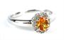 Zlatý prsten s brilianty a žlutým safírem, zlato ryzost 585/1000, hlava prstenu je zdobena diamanty o celkové hmotnosti 0,14 ct a safírem o hmotnosti 0,51 ct. Velikost 54. Hmotnost prstenu 2,85 g.