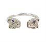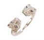 Zlatý prsten s dvěmi zvířecími hlavami zdobený s brilianty a safíry. Zlato ryzosti 585/1000, Celková hmotnost diamantů 0,35 ct. Hmotnost prstenu 2,90 g. Velikost 55.