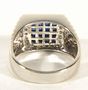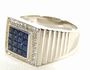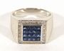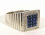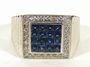 Elegantní pánský zlatý prsten zdobený ve čtvercové hlavě 16 safíry a okolo řadou briliantů. Zlato o ryzosti 750/1000, celková hmotnost briliantů 0,10 ct, celková hmotnost safírů 1,48 ct, hmotnost prstenu 10,00 g. Velikost 61. Certifikát na kameny k dispozici.