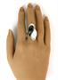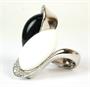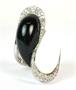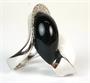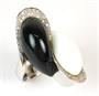 Masivní prsten z bílého zlata ryzosti 750/1000 zdobený černým a bílým kamenem a drobnými brilianty. Celková hmotnost prstenu: 20,54 g, velikost 57.