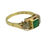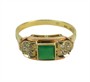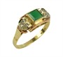 Prsten ze žlutého zlata ryzosti 585/1000 (punc lvíček) zdobí chrysopras a čiré kamínky. Velikost prstenu 57, celková hmotnost 3,34 g. Pěkná prvorepubliková práce.