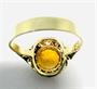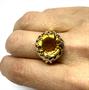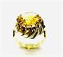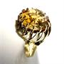 Výrazný prsten ze 14ti karátového zlata (585/1000). Šperk je osazen velkým, sytě žlutým citrínem fazetového brusu. Kámen za zasazen pomocí krapen. Váha šperku 5,98 g. Velikost 61. Prsten byl profesionálně vyleštěn. Perfektní stav.