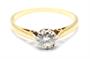 Zlatý prsten s diamantem. Žluté a bílé zlato 750/1000. Přírodní diamant 0,36 ct, kvalita VS2 - SI1, barva H - I. Váha prstenu: 2,16 g. Velikost prstenu: 55.