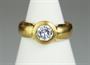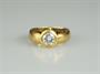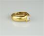 Robustní prsten ze žlutého zlata s diamantem briliantového brusu, celková hmotnost 7,34 g, Au 585/1000, osvědčení Puncovního úřadu, ryzostní značka, značka výrobce GM a starý rakouský punc. Diamant briliantového brusu 0,80 ct, průměr 6,4 mm, barva slabě tónovaná bílá J - K, čistota VS2, brus VG, znalecký posudek. Velikost 57, Rakousko, 60. léta 20. století.