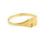 Prsten vyrobený ze zlata ryzosti 375/1000 hlava prstenu je zdobena jemným paprskovitým rytím, které evokuje motiv vycházejícího slunce ve jeho středu je osazen drobný diamant. Anglické puncy. Velikost 49. Hmotnost 1,04 g.