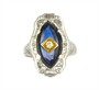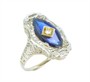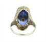 Prsten z bílého zlata s diamantem a modrým kamenem ,, zajímavá kvalitní zlatnická práce , o ryzosti 585/1000 je osazen velkým modrým kamenem a uprostřed osazen diamantem . Prsten je dlouhý 2,3 cm a široký 1,3 cm ,hezký výrazný šperk,Celková hmotnost prstenu je 3,42 g. Velikost 55.