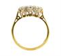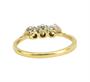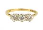 Elegantní prsten osazen v řadě třemi diamanty briliantového brusu o celkové hmotnosti 0,50 ct (0,17 ct - 2 ks; 0,16 ct - 1 ks), jejich kvalita je velmi dobrá a jsou uloženy v korunách z bílého zlata. Jemný a nadčasový šperk držící se v doznívající tradici art-deco zásnubních prstenů, precizní londýnská klenotnická práce z roku 1958.