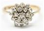 Zlatý prsten s diamanty. Žluté zlato 375/1000. Přírodní diamanty - starý brus, kvalita SI1 - I1, barva H - J, celková váha 1 ct. Váha prstenu: 2,43 g.