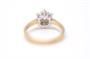 Zlatý prsten s diamanty. Žluté a bílé zlato 375/1000. Přírodní diamanty, kvalita SI2 - I2, barva H - I, celková váha 0,5 ct. Váha prstenu: 2,51 g. Velikost prstenu: 52.