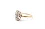 Zlatý prsten s diamanty. Šína - žluté zlato 416/1000, 560/1000, hlava - platina 900/1000. Přírodní diamanty - starý brus, kvalita SI1 - SI2, barva H - J, celková váha 0,4 ct. Váha prstenu: 2,05 g. Velikost prstenu: 49,5. Osvědčení puncovního úřadu.