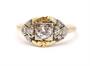Zlatý prsten s diamanty. Bílé a žluté zlato 570/1000, 585/1000, 750/1000. Přírodní diamanty - starý brus, kvalita SI1 - SI2, barva H - J, celková váha 0,3 ct (centrální diamant 0,24 ct). Váha prstenu: 1,5 g. Velikost prstenu: 51. Osvědčení puncovního úřadu.