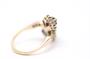 Zlatý prsten s diamanty. Žluté a bílé zlato 375/1000. Přírodní diamanty - starý brus, kvalita SI2 - I1, barva I - J, celková váha 0,9 ct. Váha prstenu: 4,1 g. Velikost prstenu: 57.