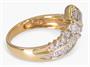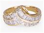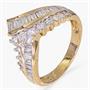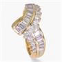 exkluzívní zlatý prsten s diamanty briliantového a bagetového brusu, celková hmotnost 32 kusů diamantů je 1,15 ct v barvě F-G, 12 kusů diamantů briliantového brusu celkem 0,45 ct, 20 ks. diamantů bagetového brusu celkem 0,70 ct, Au 4,13 g/585/1000, Antverpy – Belgie, kolem r. 2000, platný punc, IGI posudek, velikost prstenu 55