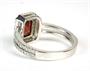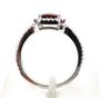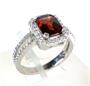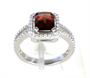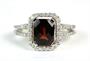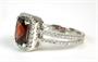 Prsten ze zlata ryzosti 585/1000 zdobený diamanty o celkové hmotnosti 0,42 ct a granátem o hmotnosti 1,94 ct. Celková hmotnost prstenu: 3,80 g. Velikost 54,5.