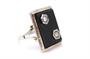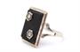 Zlatý prsten s diamanty a onyxem. Bílé zlato 500/1000, 560/1000, 585/1000. Přírodní onyx. Přírodní diamanty, kvalita SI1 - SI2, barva H - I, celková váha 0,15 ct. Váha prstenu: 5,3 g. Velikost prstenu: 54,5. Osvědčení puncovního úřadu.