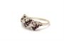 Zlatý prsten s diamanty a rubíny. Bílé zlato 750/1000. Rubíny, celková váha 0,7 ct. Přírodní diamanty, kvalita SI1 - SI2, barva H - J, celková váha 0,6 ct. Váha prstenu: 3,85 g. Velikost prstenu: 48.