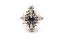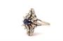 Zlatý prsten s diamanty a safírem. Žluté zlato 333/1000. Safír 0,4 ct. Přírodní diamanty, kvalita SI1 - SI2, barva G - I, celková váha 0,5 ct. Váha prstenu: 5,46 g. Velikost prstenu: 51.