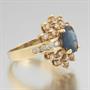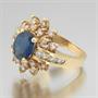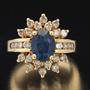Zlatý prsten s diamanty a safírem. Žluté zlato 585/1000. Safír 2,2 ct. Přírodní diamanty, kvalita SI1 - SI2, barva J - K, celková váha 1,2 ct. Váha prstenu: 5,96 g. Velikost prstenu: 54.
