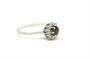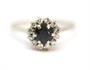 Zlatý prsten s diamanty a safírem. Bílé zlato 750/1000. Přírodní safír 0,25 ct. Přírodní diamanty, kvalita SI1 - SI2, barva H - J, celková váha 0,45 ct.