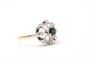 Zlatý prsten s diamanty a safírem. Žluté a bílé zlato 630/1000, 705/1000. Přírodní safír 0,25 ct. Přírodní diamanty, kvalita SI2 - I1, barva H - J, celková váha 0,2 ct. Váha prstenu: 3,5 g. Velikost prstenu: 54.