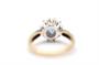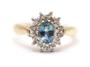 Zlatý prsten s diamanty a safírem. Žluté a bílé zlato 375/1000. Přírodní safír 0,45 ct. Přírodní diamanty, kvalita SI2 - I2, barva H - J, celková váha 0,25 ct.
