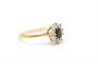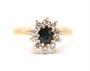 Zlatý prsten s diamanty a safírem. Žluté zlato 750/1000. Přírodní safír 0,35 ct. Přírodní diamanty, kvalita SI1 - SI2, barva H - I, celková váha 0,25 ct.
