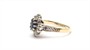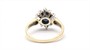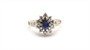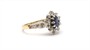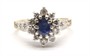 Zlatý prsten s diamanty a safírem. Žluté a bílé zlato 375/1000. Přírodní safír, váha 0,4 ct. Přírodní diamanty, kvalita SI1 - I1, barva H - J, celková váha 0,45 ct. Váha prstenu: 2,75 g. Velikost prstenu: 50.
