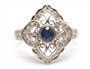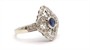 Zlatý prsten s diamanty a safírem. Bílé zlato 375/1000. Přírodní safír 0,35 ct. Přírodní diamanty, kvalita SI2 - I1, barva I - J, celková váha 0,18 ct.