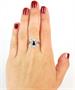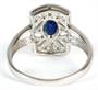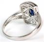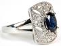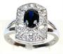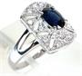 Prsten z bílého zlata o ryzosti 585/1000 zdobený diamanty o celkové hmotnosti 0,10 ct a přírodním modrým safírem.