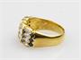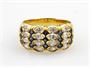 zlatý prsten s diamanty brusu naveta o hmotnosti cca 0,8 ct a se safíry briliantového brusu, Au btto 9,84 g/750/000, velikost 57; západní Evropa, kolem roku 1990; současný český punc