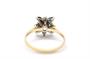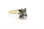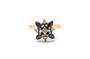 Zlatý prsten s diamanty a safíry. Žluté a bílé zlato 750/1000. Přírodní safíry, celková váha 0,4 ct. Přírodní diamanty, kvalita VS2 - SI2, barva H - I, celková váha 0,25 ct. Váha prstenu: 3,02 g. Velikost prstenu: 55.