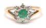 Zlatý prsten s diamanty a smaragdem. Žluté zlato 375/1000. Přírodní smaragd 0,3 ct. Přírodní diamanty, kvalita SI1 - SI2, barva H - I, celková váha 0,35 ct. Váha prstenu: 3 g. Velikost prstenu: 55.