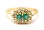 Zlatý prsten s diamanty a smaragdy. Žluté zlato 750/1000. Smaragdy, celková váha 0,36 ct. Přírodní diamanty, kvalita VS2 - SI1, barva G - I, celková váha 0,3 ct. Váha prstenu: 3,93 g. Velikost prstenu: 51.