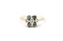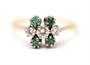 Zlatý prsten s diamanty a smaragdy. Žluté a bílé 585/1000. Smaragdy, celková váha 0,2 ct. Přírodní diamanty, kvalita VS2 - SI1, barva H - I, celková váha 0,3 ct (centrální diamant 0,15 ct). Váha prstenu: 2,9 g. Velikost prstenu: 57.