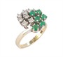 Prsten z bílého zlata ryzosti 585/1000 (punc labuť) s diamanty (cca 0,40 ct) a smaragdy. Velikost prstenu 56.Celková hmotnost 5,46 g.