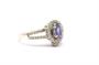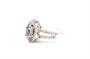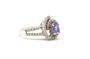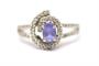 Zlatý prsten s diamanty a tanzanitem. Bílé zlato 585/1000. Přírodní tanzanit 0,4 ct. Přírodní diamanty, kvalita SI2 - I1, barva H - I, celková váha 0,2 ct. Váha prstenu: 4,14 g. Velikost prstenu: 55.
