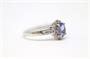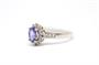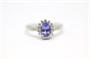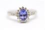 Zlatý prsten s diamanty a tanzanitem. Bílé zlato 750/1000. Přírodní tanzanit 0,8 ct. Přírodní diamanty, kvalita SI1 - SI2, barva H - J, celková váha 0,37 ct. Váha prstenu: 3,55 g. Velikost prstenu: 55.