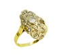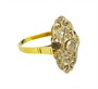 Prsten vyrobený ze zlata ryzosti 585/1000 zdobený centrálním diamantem (0,10 ct) a diamantovými routami. Diamanty jsou zasazeny v platině ryzosti 950/1000. Celková hmotnost 2,82 g. Velikost 52. K dispozici Osvědčení Puncovního úřadu.