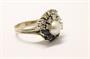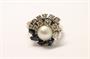 Zlatý prsten s diamanty, safíry a perlou. Bílé zlato 585/1000. Přírodní safíry, celková váha 0,45 ct. Přírodní diamanty, kvalita SI1 - SI2, barva G - I, celková váha: 0,8 ct. Váha prstenu: 6,9 g. Velikost prstenu: 51.