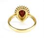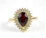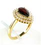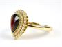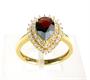 Zlatý prsten s temně rudým granátem a brilianty, zlato ryzost 585/1000, hlava prstenu je zdobena diamanty o celkové hmotnosti 0,35 ct a granátem o hmotnosti 1,18 ct. Velikost 55. Hmotnost prstenu 3,56 g.