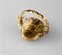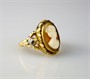 zlatý prsten s kamejí a diamanty routového brusu, výjimečné zlatnické provedení s rytím a zdobnou šínou, Au btto 5,35 g/585/1000, Československo, kolem r. 1925, dobový punc (čejka), rozměry 2,2 x 2 cm, velikost prstenu 53