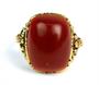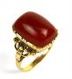 Prsten ze zlata ryzosti 585/1000, zdoben karneolem. Velikost kamene: 1,5 x 1,1 cm. Hmotnost: 5,56 g. Velikost: 58.