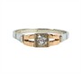 Starožitný prvorepublikový v art deco tvarosloví z dvojí barvy zlata zdobený leukosafírem, ryzost zlata 585/1000, punc lvíček. Hmotnost prstenu 3.02 g velikost 63.