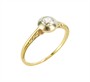 Prvorepublikový prsten vyrobený z kombinace žlutého a bílého zlata ryzosti s jemně gravírovanou šínou je zdobený leukosafírem. Ryzost 585/1000, velikost 51. Celková hmotnost 1,34 g. Výborný stav.
