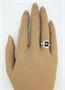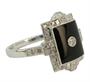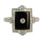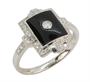 Prsten z bílého zlata ryzosti 585/1000 zdobený onyxem a diamanty briliantového brusu o celkové hmotnosti 0,20 ct. Velikost 53. Celková hmotnost 3,06 g.