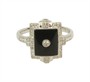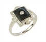 Prsten z bílého zlata ryzosti 585/1000 s onyxem a diamanty briliantového brusu o celkové hmotnosti 0,20 ct. Celková hmotnost prstenu je 3,06 g. Velikost 53.
